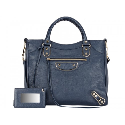 Balenciaga nachtblauw geglazuurd, generfd leer Metallic Edge Velo.