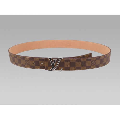 Louis Vuitton Initial Damier riem met zwarte en zilveren gesp.