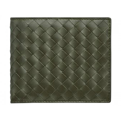 Bottega Veneta tweevoudige portemonnee in Pacific Intrecciato Vn groen