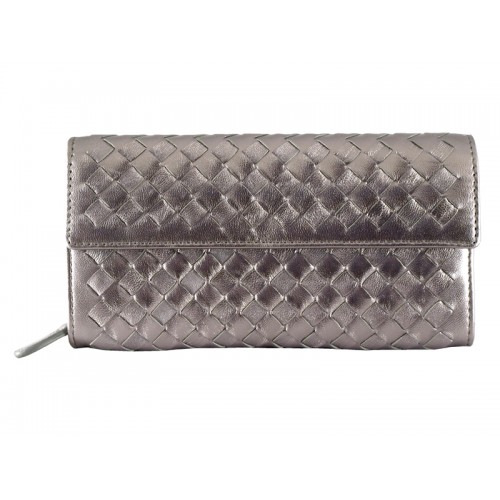 Bottega Veneta Intrecciato Nappa Continental Portemonnee Met Knoop Zilvergrijs