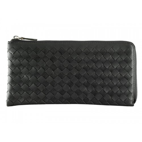 Bottega Veneta Intrecciato nappaleer portemonnee met ritssluiting rond zwart