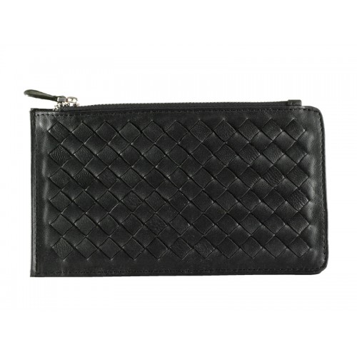 Bottega Veneta Intrecciato nappaleer portemonnee met ritssluiting zwart
