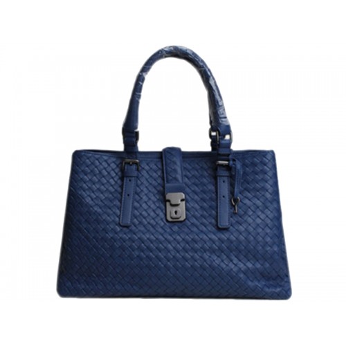 Bottega Veneta Roma Intrecciato leren draagtas donkerblauw