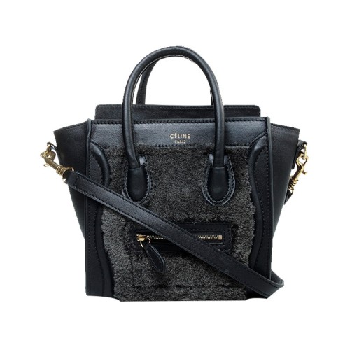 Celine Luggage Mini Tote in kalfsleer zwart/wol zwart