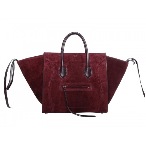 Celine Luggage Phantom Square Tote Bag Suède Leer Wijnrood