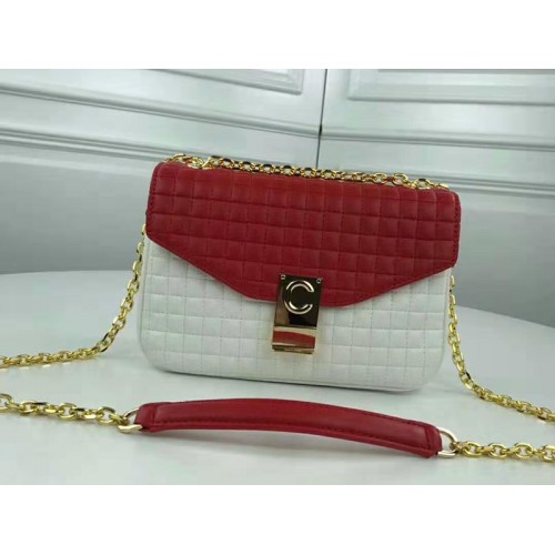 Celine Medium C tas van gewatteerd kalfsleer in wit en rood.