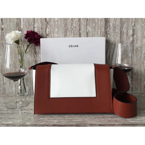 Celine Medium Frame Schoudertas Calskin Bordeauxrood en Wit