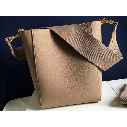 Celine Sangle kleine bucket bag van zacht generfd kalfsleer in beige.
