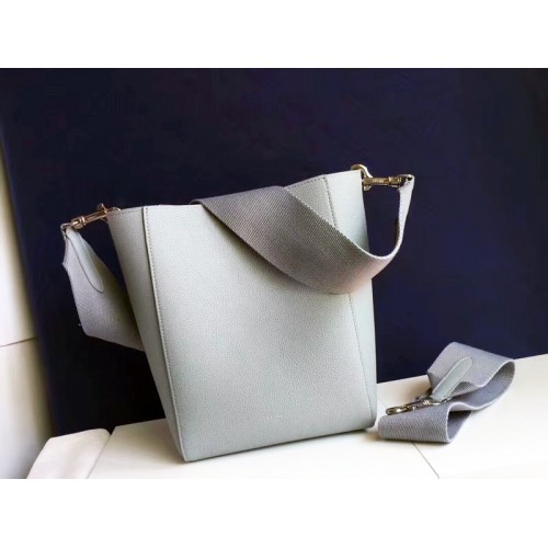 Celine Sangle kleine bucket bag van zacht generfd kalfsleer in lichtblauw.