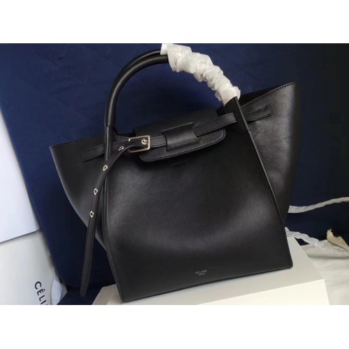 Celine Small Big Bag met lange schouderband in soepel generfd kalfsleer in zwart