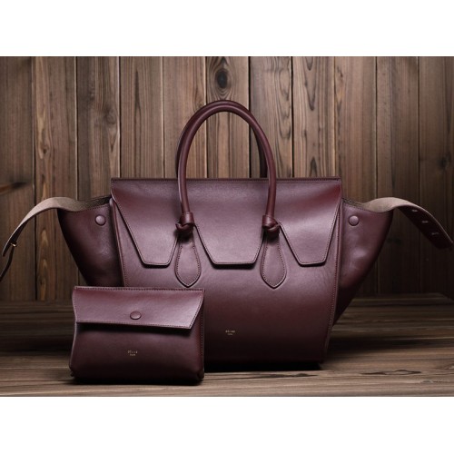 Celine Tie Nano handtas met handvat, bordeauxrood leer