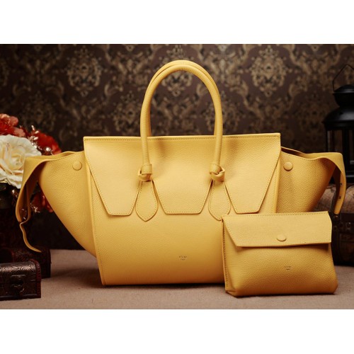 Celine Tie Nano handtas met handvat, geel leer