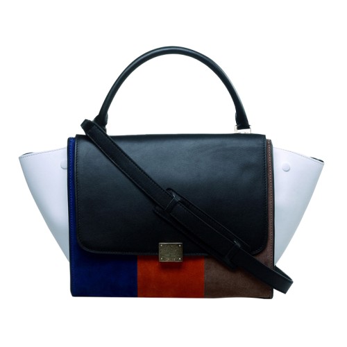 Celine Trapeze schoudertas van meerkleurig kalfsleer in de kleuren zwart/blauw/oranje/beige/wit.