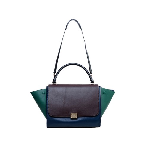 Celine Trapeze schoudertas van veelkleurig kalfsleer in de kleuren chocoladebruin/marineblauw/groen.