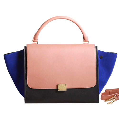 Celine Trapeze schoudertas van meerkleurig kalfsleer in roze/zwart/suèdeblauw