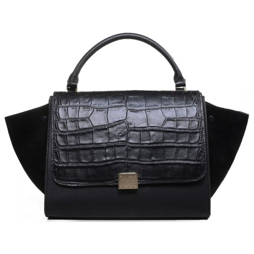 Celine Trapeze schoudertas, veelkleurig krokodillenleer, zwart/suède zwart