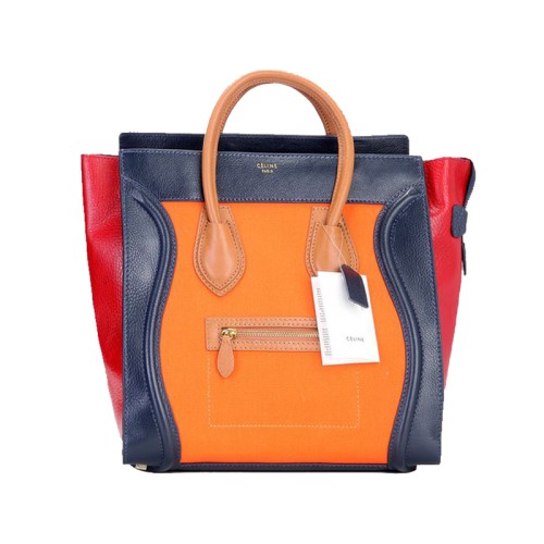 Celine Luggage Large Tote in kalfsleer blauw/canvas oranje
