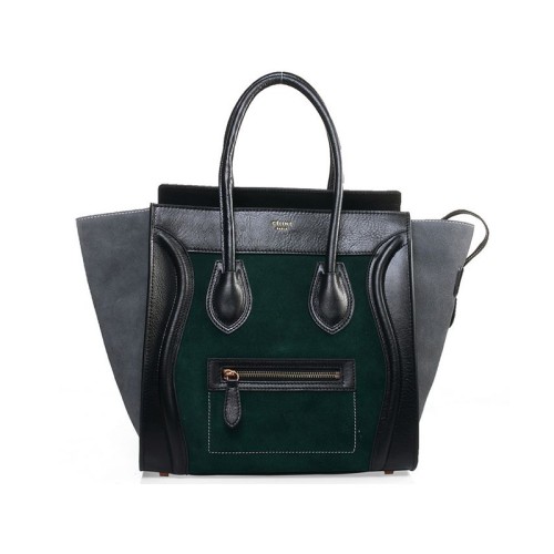 Celine Luggage Medium Tote in kalfsleer zwart / suède donkergroen
