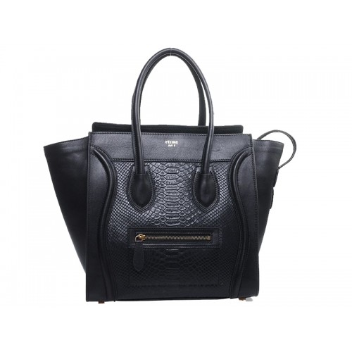 Celine Luggage Medium Tote in kalfsleer zwart met zwart slangenleer