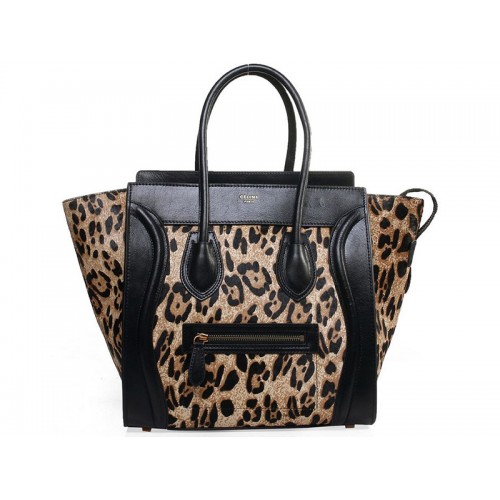Celine Luggage Medium Tote in kalfsleer, zwart met luipaardprint