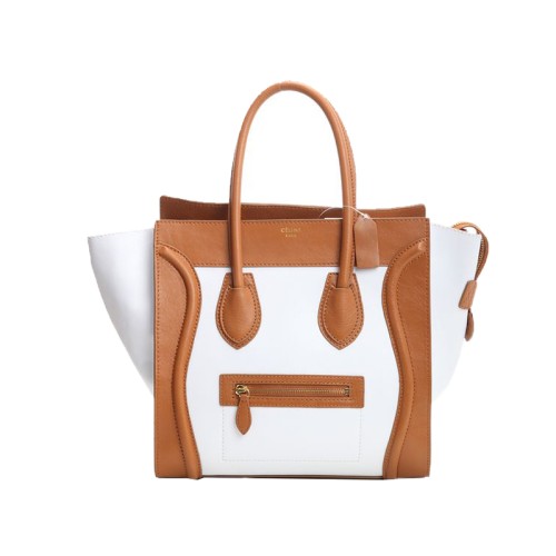 Celine Luggage Medium Tote in kalfsleer, camel/wit