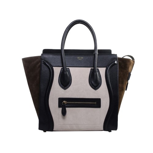 Celine Luggage Medium Tote in kalfsleer lichtbeige/suède olijfgroen