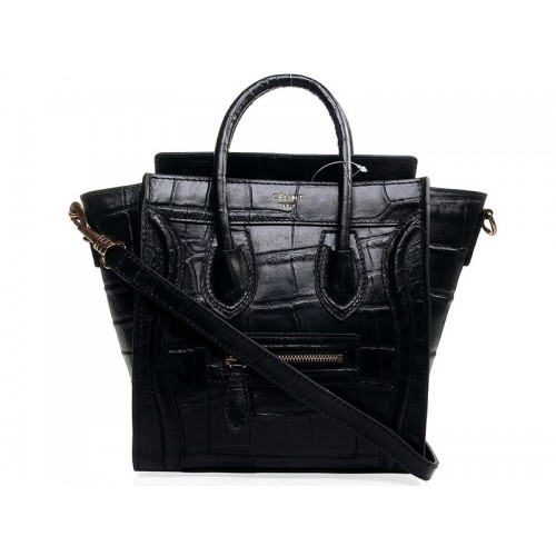 Celine Luggage Mini Tote in zwart krokodillenleer