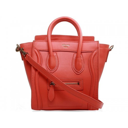 Celine Luggage Mini Tote in kalfsleer, kersenrood
