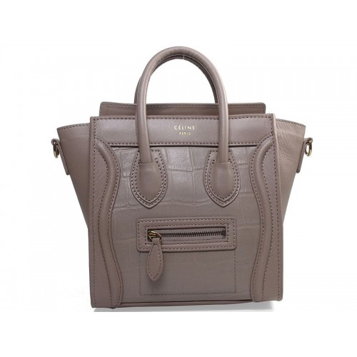 Celine Luggage Mini Tote in kaki kalfsleer met krokodillenleer