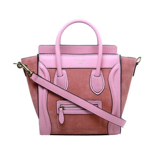 Celine Luggage Mini Tote in kalfsleer roze / suède roze