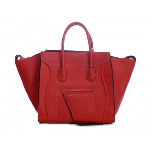 Celine Luggage Phantom Square Tote Bag Cherry met zwarte afwerking