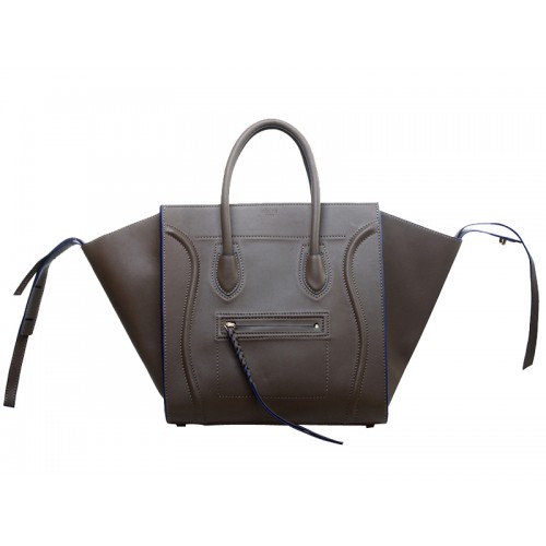 Celine Luggage Phantom Square Tote Bag Grijs met Blauwe Afwerking