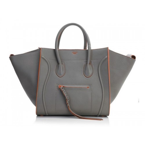 Celine Luggage Phantom Square Tote Bag Grijs met Oranje Afwerking