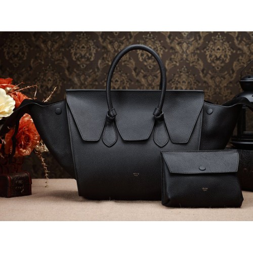 Celine Tie Nano handtas met handvat, zwart leer