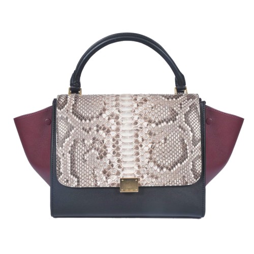 Celine Trapeze schoudertas van pythonleer in crème/zwart/wijnrood