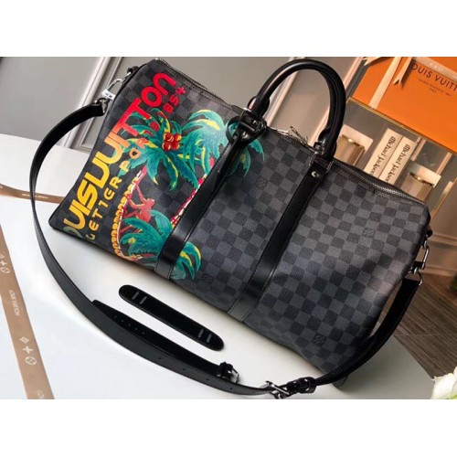 Geïnspireerd door de heren- en rsquo;s-modeshow lente/zomer 2018, bevat het Jungle-thema een speelse palmboomprint en een regenboog Louis Vuitton-signatuur in surfplankstijl op Damier Cobalt-canvas. De iconische Keepall 45 holdall, de originele zachte reistas, is een stijlvolle en praktische keuze voor een weekendje weg.