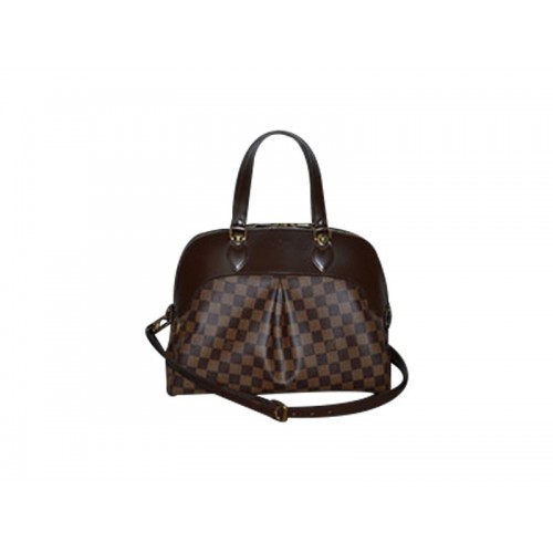 - Damier gecoate canvas buitenkant met gladde leren bekleding en rode microvezelvoering