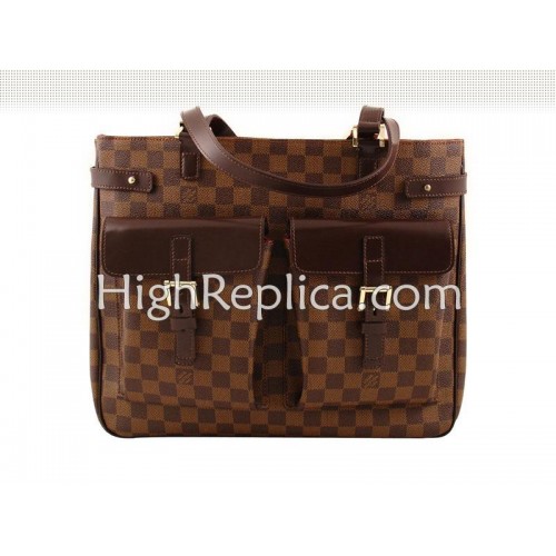 . Damier canvas met chocolade lederen bies en gepolijste gouden hardware