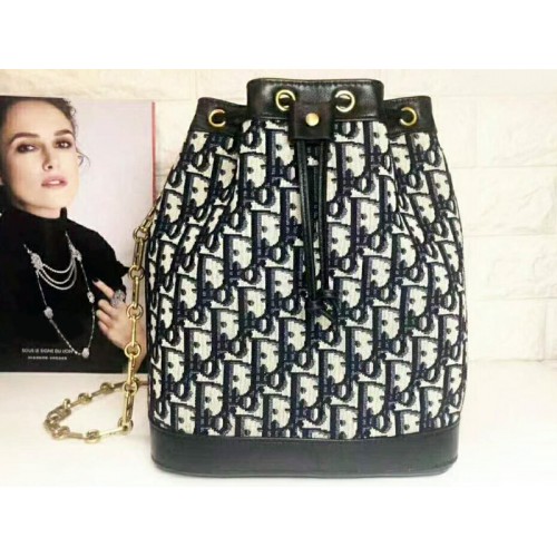 Dior Diorissimo Bucket Bag met trekkoord, groot model, zwart
