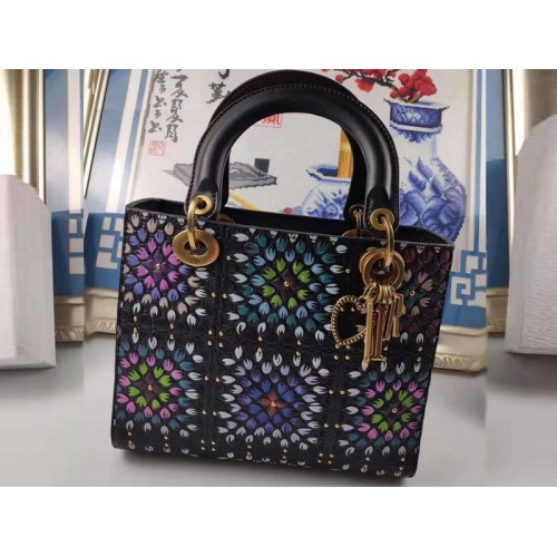 Dior Lady Dior in zwart, hittegeperst kalfsleer met handbeschildering.
