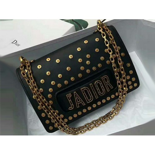 Dior J'Adior Mini-tasje met klep en ketting, goudkleurig, met studs, zwart dstud01