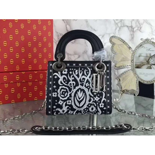 Dior Mini Lady Dior Geborduurde Tas Zwart