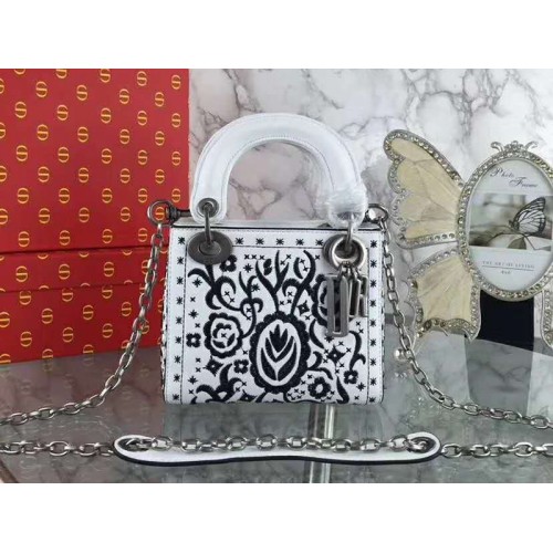 Dior Mini Lady Dior Geborduurde Tas Wit