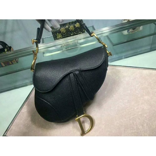 Dior Mini Saddle Calfskin Bag Gold Hardware Black m0447s