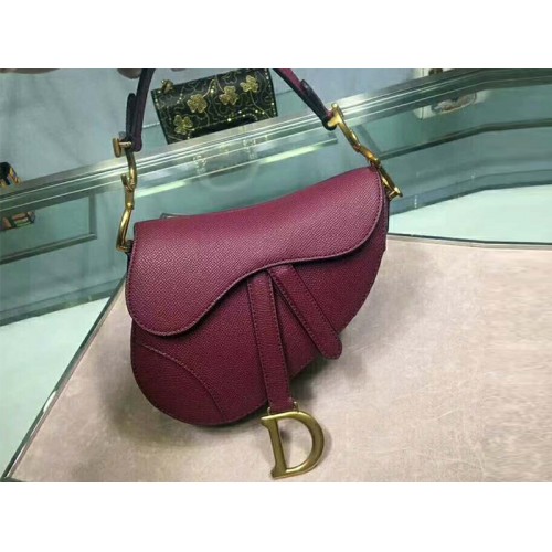 Dior Mini Saddle Calfskin Bag Gold Hardware Burgundy m0447s1
