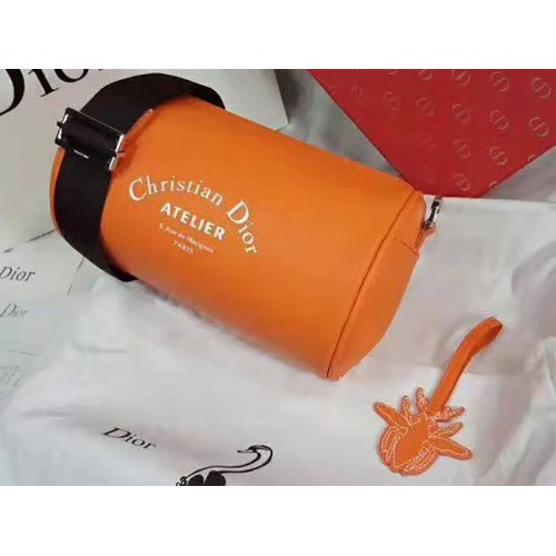 Denim oranje korrelig kalfsleer met "Christian Dior Atelier" print