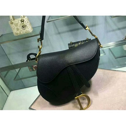 Dior Saddle Calfskin Bag met gouden hardware, zwart m0446l