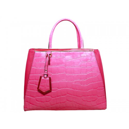 Fendi 2jours Kalfsleren Tote Bag Krokodillenprint Felroze