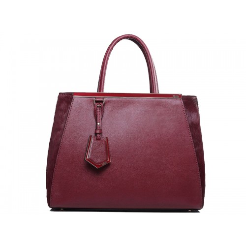 Fendi 2jours Kalfsleren Tote Bag Wijnrood met Bont