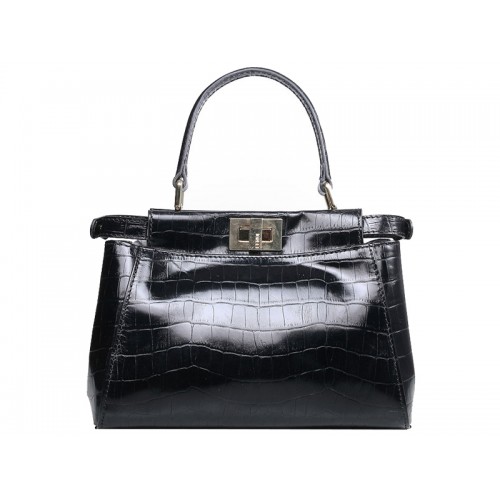 Fendi Iconic Mini Peekaboo Tas in zwart krokodillenleer